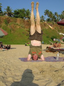 The progress you can make from 4 hours of Yoga Asanas a day is amazing – a solid and sustained headstand was something that felt a country mile away at the beginning of the course, but now feels, well if not exactly natural, at least doable. (Due to doubters after the original post, I have now included a picture. The pinkness in the face is sunburn, not over-exertion I can assure you).