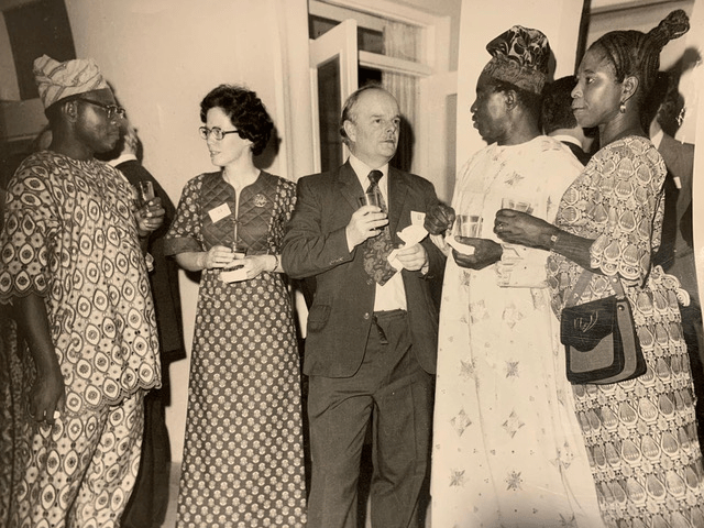 She visited 26 countries representing Scotland, taking groups of Scottish businessmen (and they were all men) to form export relationships in Canada, USA, Hong Kong, France, Japan, Italy, Mexico, Australia, Korea, Indonesia, Taiwan, New Zealand, Nigeria, Venezuela, Egypt, Libya, Iran, Finland, Czechoslovakia, USSR, Kuwait, Qatar, Oman, Korea, Netherlands & Spain.