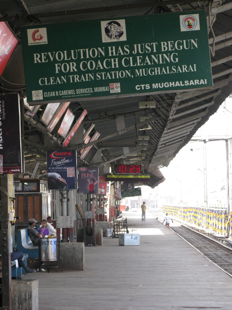 We pulled into Allahabad station, where the Ganges and the Yamuna rivers converge. Two men in smart green jump-suits climbed on – one walked purposely through the carriage spraying pungent air freshener everywhere, while another brought on what looked like a steam vacuum cleaner and started cleaning the floors. Someone, somewhere, had spotted the opportunity of these private cleaning contracts. “Clean n Carewel” were clearly a successful outfit.